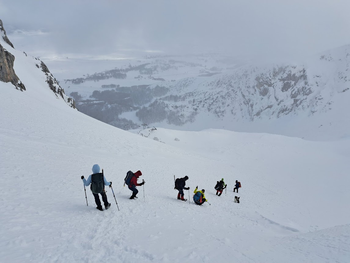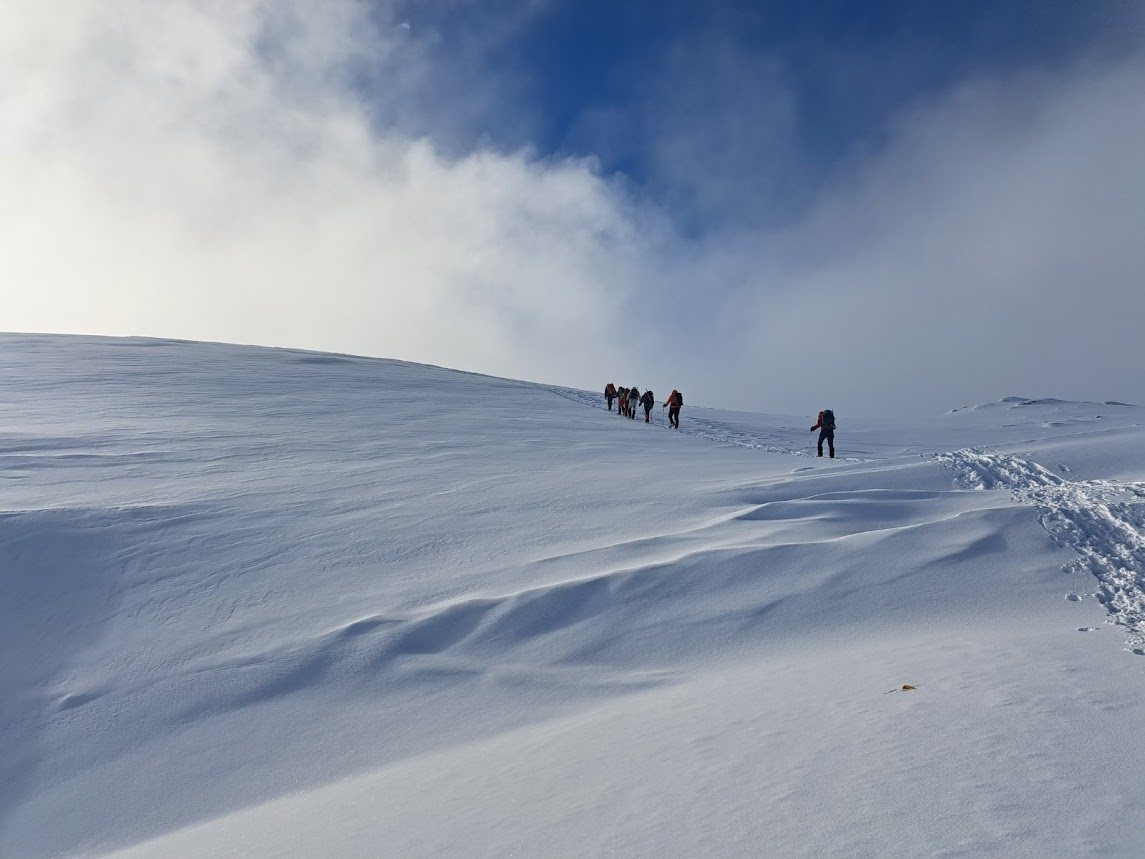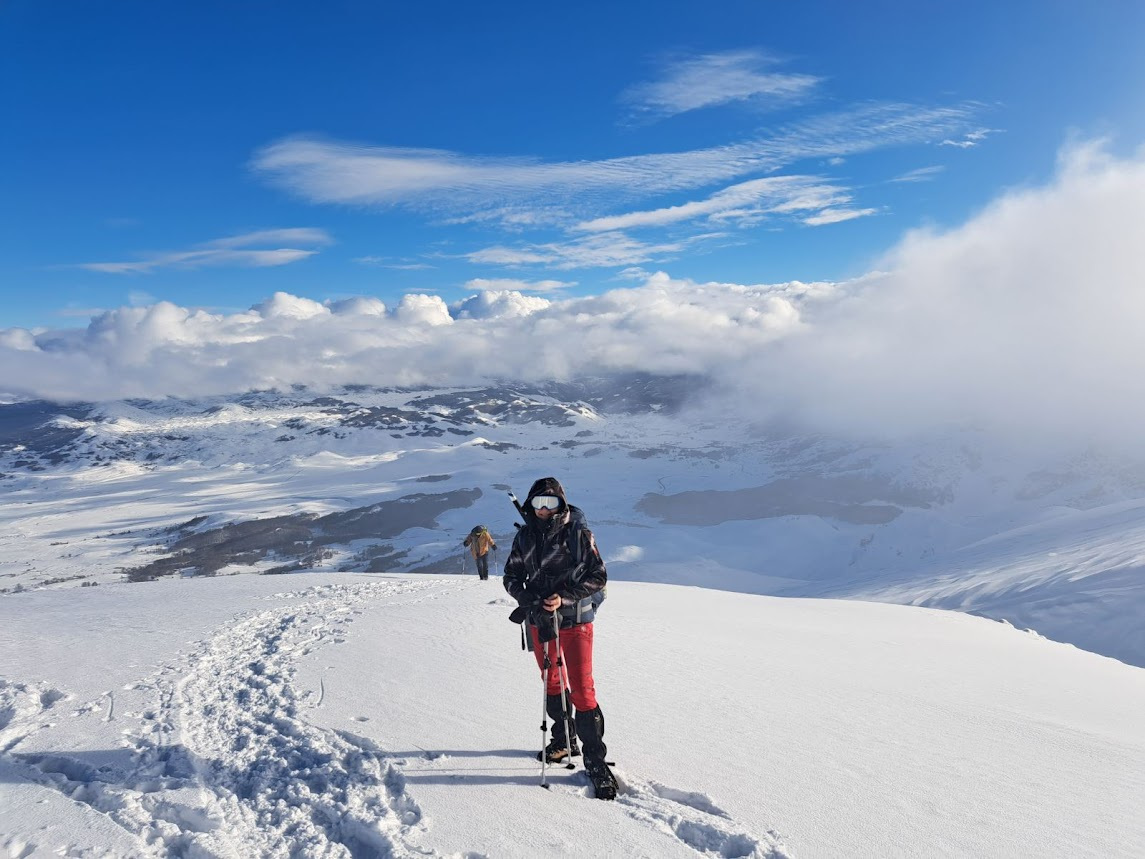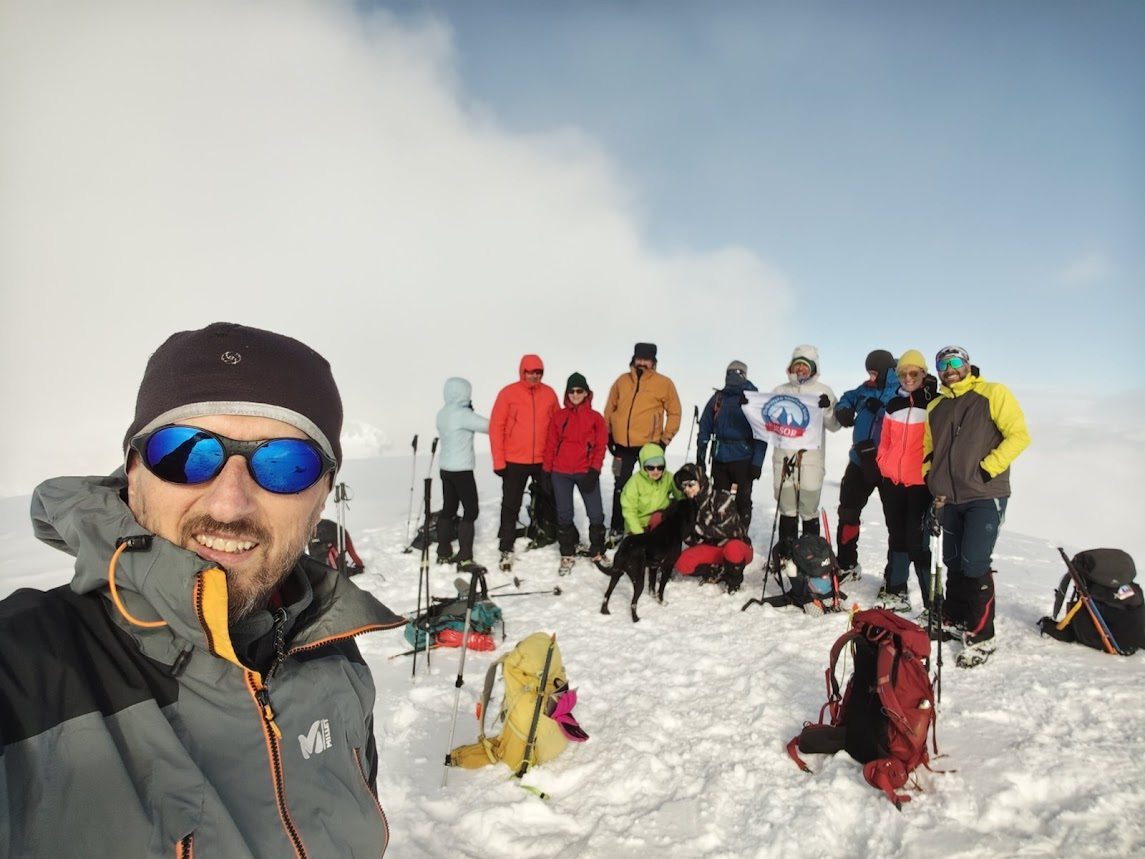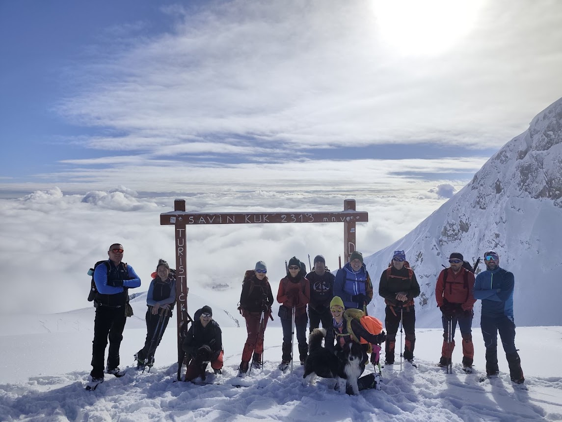 Prošlog vikenda nas dvanaest je krenulo na Durmitor, sa jasnom željom da provedemo vikend u planini i uživamo u snegu. Dočekao nas je pravi durmitorski ambijent – magla, oblaci i ozbiljna dubina snega. Uspon smo započeli sa parkinga skijališta Savin kuk ikrenuli skijaškom stazom prema račvanju za Šljeme. Od tog račvanja prema Savinom kuku staza je bila zatrpana ostacima lavine, tako da smo uz dodatnu opreznost krenuli ka cilju. Sa vrha su nas loši uslovi u kuloaru između Savinog kuka i Šljemena naterali da promenimo prvobitan plan i vratimo se do raskrsnice gde se odvaja staza za Šljeme. Od te raskrsnice ušli smo u gustu maglu sa jakim vetrom, ali sa dovoljno snage da popnemo vrh. U povratku nas je planina nagradila spektakularnim razvedravanjem i sa mnogo manje vetra. Vratili smo se u sumrak, uz umor koji prija i osećaj da je odluka bila ispravna.