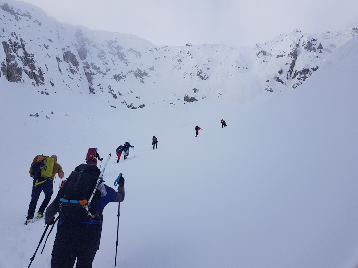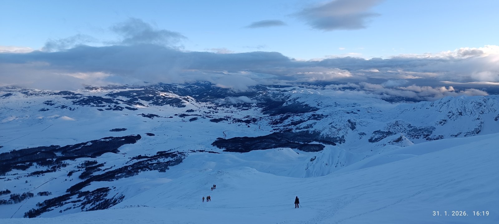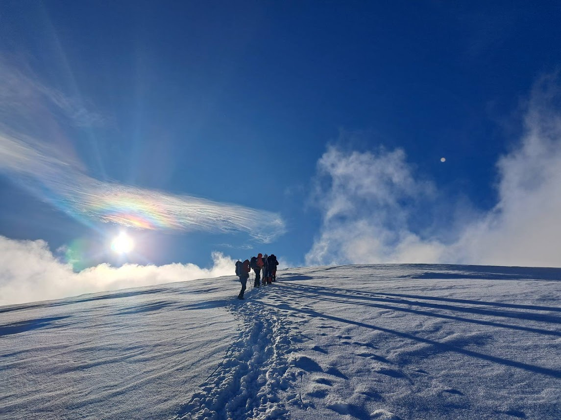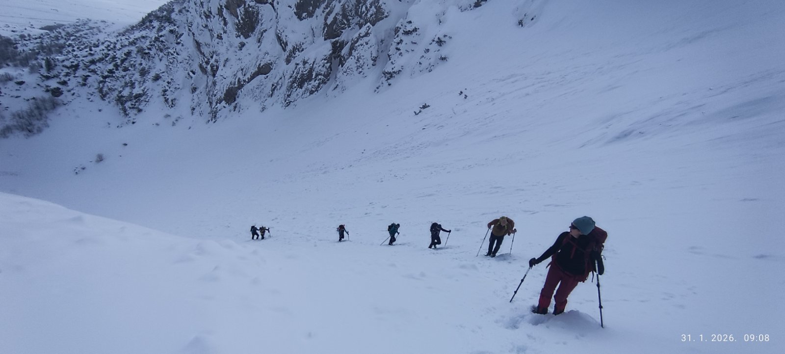Prošlog vikenda nas dvanaest je krenulo na Durmitor, sa jasnom željom da provedemo vikend u planini i uživamo u snegu. Dočekao nas je pravi durmitorski ambijent – magla, oblaci i ozbiljna dubina snega. Uspon smo započeli sa parkinga skijališta Savin kuk ikrenuli skijaškom stazom prema račvanju za Šljeme. Od tog račvanja prema Savinom kuku staza je bila zatrpana ostacima lavine, tako da smo uz dodatnu opreznost krenuli ka cilju. Sa vrha su nas loši uslovi u kuloaru između Savinog kuka i Šljemena naterali da promenimo prvobitan plan i vratimo se do raskrsnice gde se odvaja staza za Šljeme. Od te raskrsnice ušli smo u gustu maglu sa jakim vetrom, ali sa dovoljno snage da popnemo vrh. U povratku nas je planina nagradila spektakularnim razvedravanjem i sa mnogo manje vetra. Vratili smo se u sumrak, uz umor koji prija i osećaj da je odluka bila ispravna.