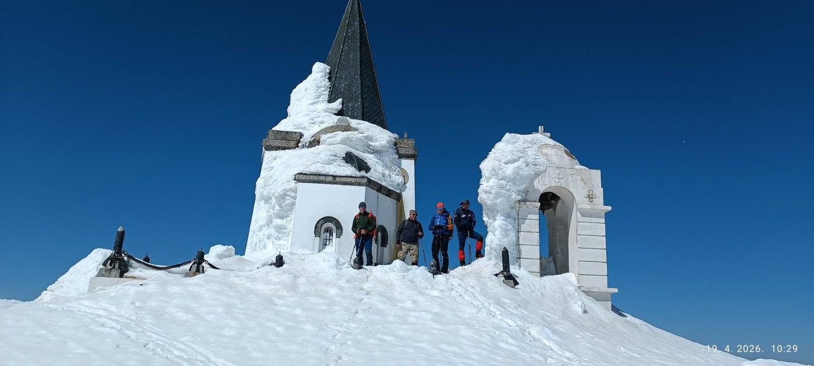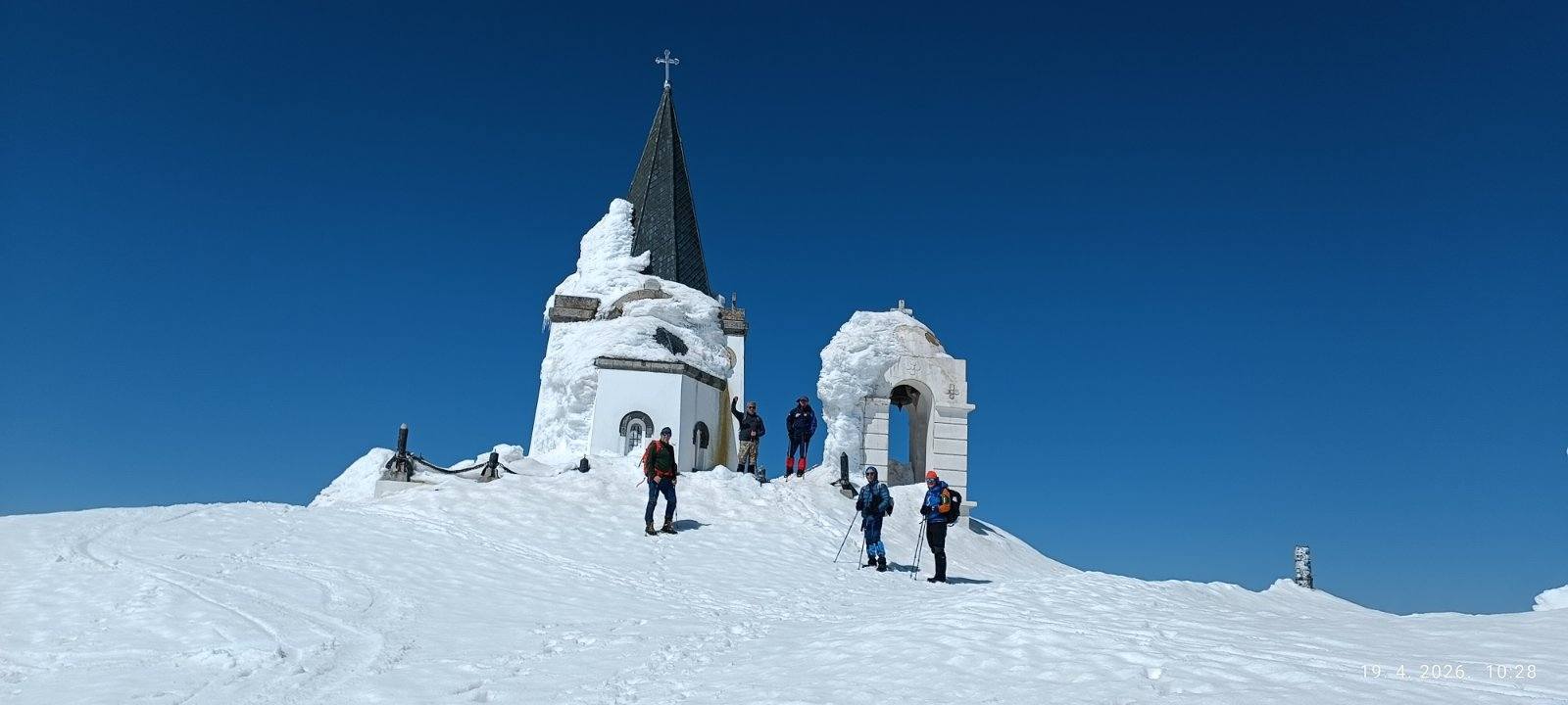 Na samom vrhu, ispred kapele Svetog Ilije, duvao je jak vetar. Obišli smo kapelu, slikali se, a zatim u povratku popeli i vrh Meterizi 2142m.