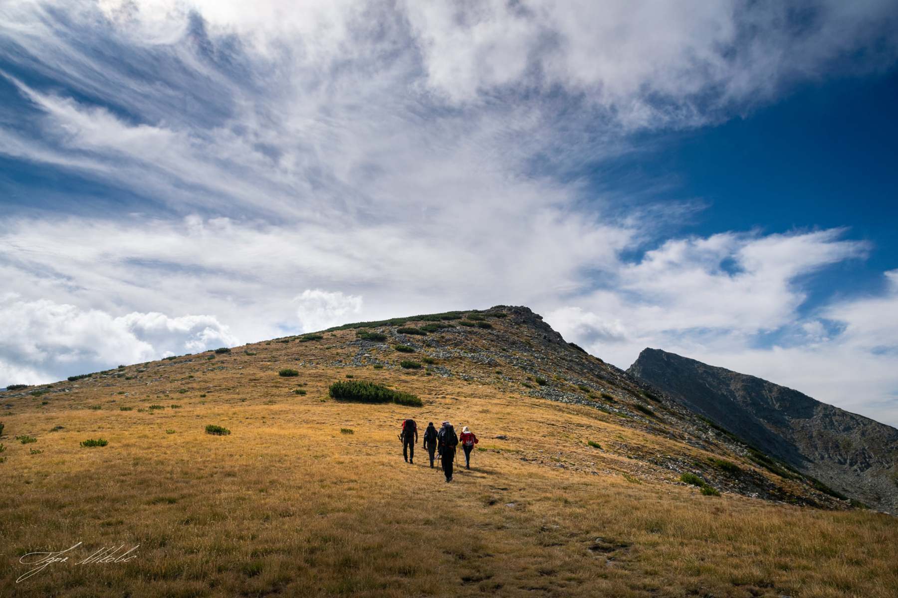 Za vikend koji je za nama, naš klub je izveo još jednu u nizu visokogorsku akciju. Grupa od sedamnaest naših članova i tri planinara iz PD Preslapa krenula je u nedelju na malo drugačiji uspon na najviši vrh Balkana. Iz Boroveca smo se prevezli gondolom do Jastrebca, pa grebenom preko vrha Aleko (2716 mnv), i Bezimenog vrha (2793 mnv) na Musalu (2926 mnv). Nakon pauze za slikanje i sigurno najkraće rođendanske žurke do sada, podelili smo se u dve grupe. Grupa od njih sedam se do Boroveca vratila klasičnom stazom, a nas trinaest je nastavilo dalje grebenom ka Malkoj Musali (2902 mnv) i vrhu Iriček (2852 mnv), pa od kod kamena tzv. Sfinga spustili smo se do Karakaševog jezera i nastavili do gondole, pa do Borovca. Prvi deo dana nas je pratilo lepo sunčano vreme i idealni uslovi za prelazak preko grebena , ali je nakon Musale planina pokazala i malo suroviju stranu. Tamo gde je teren bio stenovit i zahtevao dobru opreznost, magla i vetar su nam dodatno otežali kretanje, ali je dobro raspoloženje grupe brzo rasteralo oblake, pa smo na samom završetku staze imali skoro pa letnje vreme.