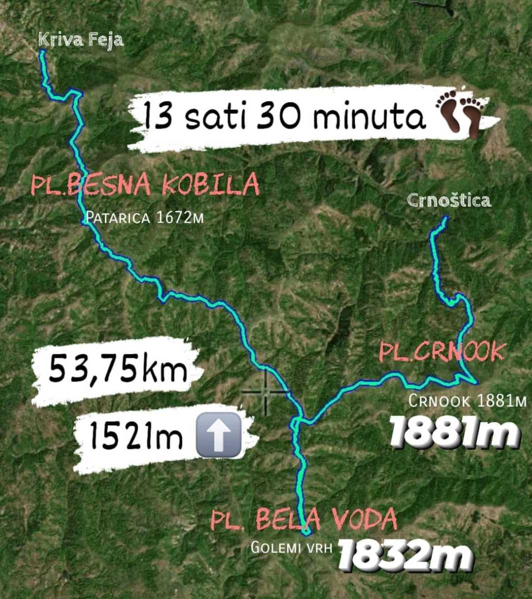 Treći po redu Džidovski maraton doneo je i novi rekord u dužini ove, sada već tradicionalne, planinarske ture osmišljene da prezentuje lepote naše zemlje i to više planina i vrhova, u više opština. Ovog puta na stazi dugoj čak 53,75km sa visinskom razlikom od 1521m sedmorica planinara i jedna planinarka (od kojih šest članova PSK Mosor i dvoje iz niškog Železničara) uspelo je da za 13 i po sati tj od svitanja do sumraka pređe deonicu od planinarskog doma “Besna kobila” do sela Crnoštica, preko obronaka Besne kobile i vrha Patarica 1675m, planine Bele vode i najvišeg Golemog vrha na 1832m skoro na tromeđi Srbije, Bugarske i Makedonije i na kraju preko Crnooka na 1881m. Nije bilo većih pauza, a na prstima jedne ruke može se izbrojati ukupan broj pauza, ekipa je bila kompaktna i skoro u isto vreme došla do cilja. U nastavku pogledajte fotografije ovih valovitih predela krajnjeg jugoistoka Srbije. Učesnici: Violeta Stoiljković, Milan Jovanović, Aleksandar Dojčinović, Marko Milošević, Miloš Bogdanović, Budimir Marjanović, Strahinja Stanković, Marko Miladinović. PSK Mosor ovim dokazuje da ima širok dijapazon planinarskih akcije koje organizuje iz vikenda u vikend. Ovde se radi o netakmičarskoj klasičnoj planinarskoj turi što se tiče tehničkih uslova ali kondiciono tj dužinski nespecifičnoj. Prvi takozvani Džidovski maraton održan je na relaciji Besna kobila-Vardenik a drugi na Staroj. Naziv je dobio po starosedeocima crnotravskog kraja Džidovima, koje je odlikovalo to što su zbog posla, između zaseoka, prelazili ogromne relacije dnevno, na većim nadmorskim visinama.